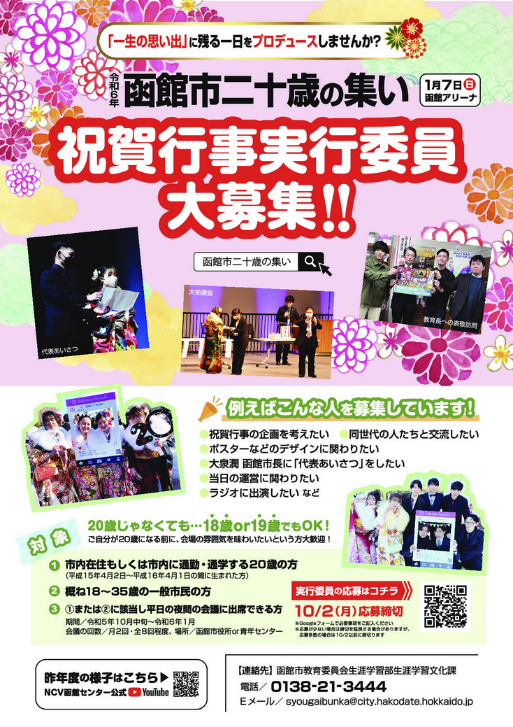 令和6年函館市二十歳の集い祝賀行事実行委員大募集! | 函館市
